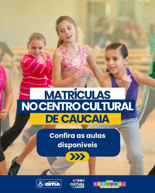 A Prefeitura de Cotia, por meio da Secretaria de Cultura e Lazer, está com inscrições abertas para diversos oficinas gratuitas oferecidas no Centro Cultural de Caucaia do Alto (rua José Lopes Neto, 320). Entre os escritórios estão: Danças Femininas, Aulas de Ritbox, Capoeira, FitDance, Aulas de Ritmos, Oficina Livre de Teatro Siga Shakespeare, Ballet, Sertanejo Universitário e Aulas de Alongamento. Para se inscrever é preciso comparecer ao Centro Cultural, de segunda a sexta-feira, das 8h às 17h. Os documentos necessários são: RG, CPF, comprovante de endereço de Cotia, uma foto 3×4, declaração escolar (para menores de 18 anos).