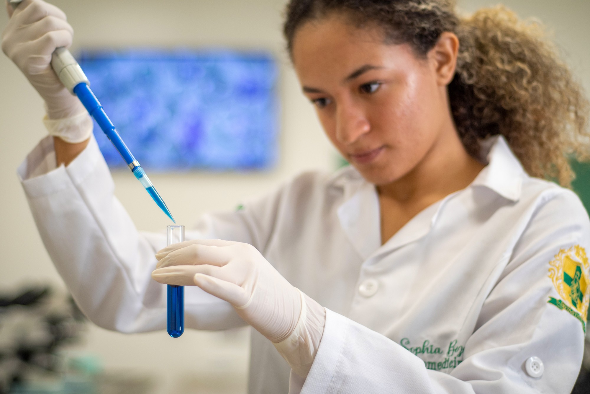 Mariana Nascimento, aluna de Enfermagem no campus de Guarujá e bolsista do Prouni, elogia a infraestrutura da universidade, incluindo salas inteligentes, laboratórios modernos e tecnologia integrada ao ensino. Ela ressalta que os recursos disponibilizados, como tablets e fones de ouvido para estudo em casa, são um grande auxílio para quem não possui recursos próprios.