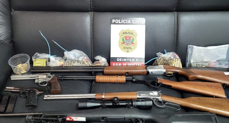 A Polícia Civil de Dracena (SP) realizou a apreensão de seis armas de fogo e munições na casa de um homem de 57 anos, suspeito de violência doméstica. A ação ocorreu durante o cumprimento de um mandado de busca e apreensão, expedido após a ex-companheira do suspeito solicitar uma medida protetiva de urgência.