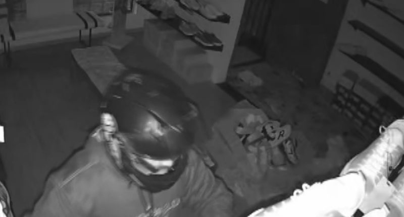 As câmeras de segurança do local foram cruciais para a reconstituição da ação. As filmagens revelam que ao menos quatro homens participaram do furto. Um deles foi flagrado utilizando um capacete, enquanto os outros três vestiam blusas com capuz, artifícios para dificultar a identificação. Em uma tentativa de apagar os rastros do crime, um dos integrantes da quadrilha, de boné, foi registrado do lado externo do estabelecimento quebrando um dos equipamentos de gravação. No interior da loja, uma imagem capturou o momento em que um dos suspeitos empilhava caixas de calçados sobre um plástico no chão, indicando a intenção de transportar grandes volumes rapidamente.