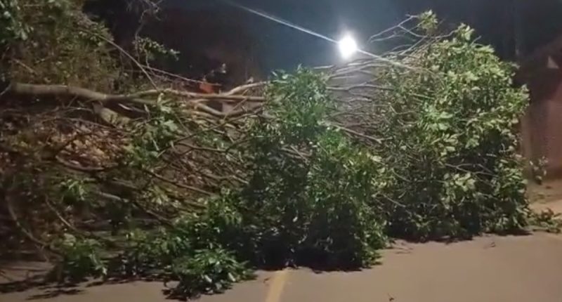 Uma árvore de grande porte cedeu sob a força da noite de…